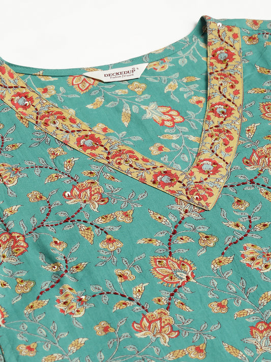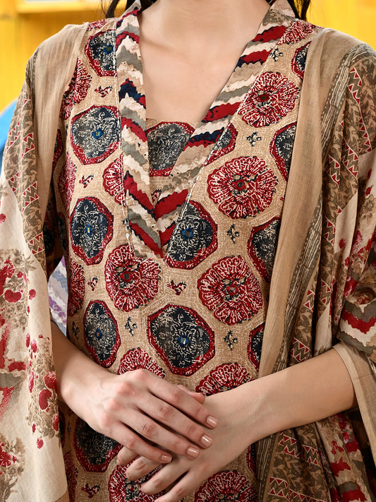 Ethnic Cotton Straight Kurta Pant Dupatta Set