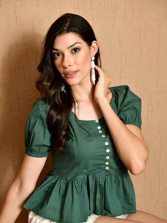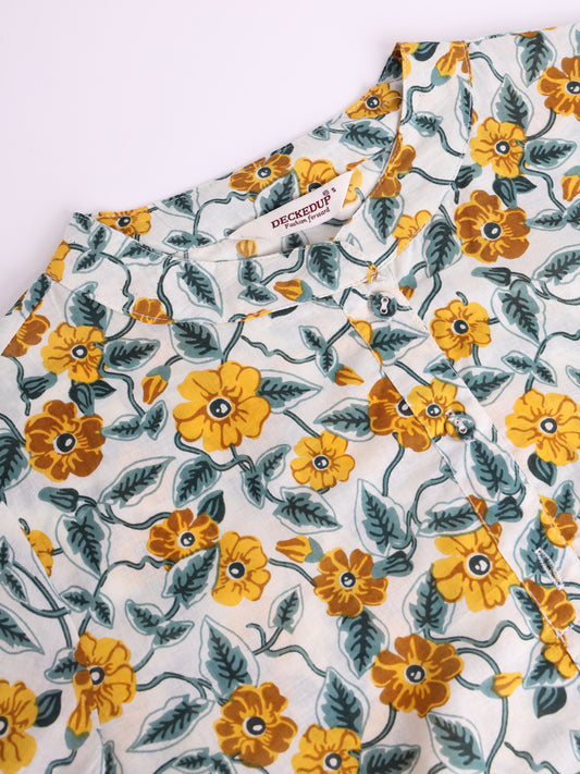 Floral Mandarin Collar Pure Cotton Tunic Top