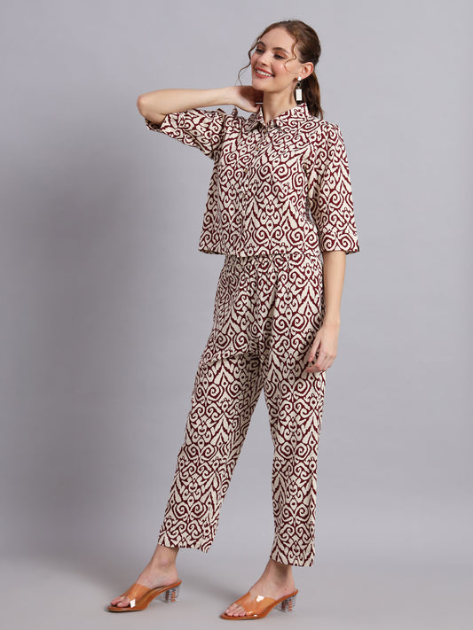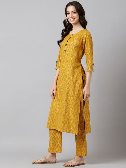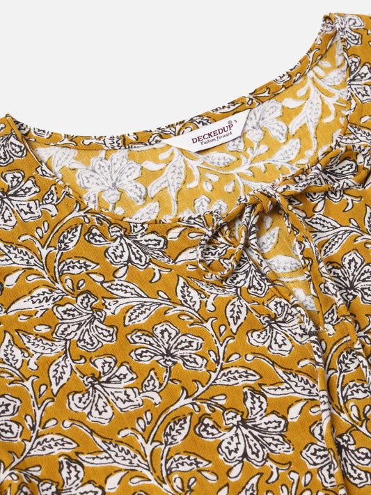 Mustard & White Printed Cotton Blend Cuffed Sleeve Dress