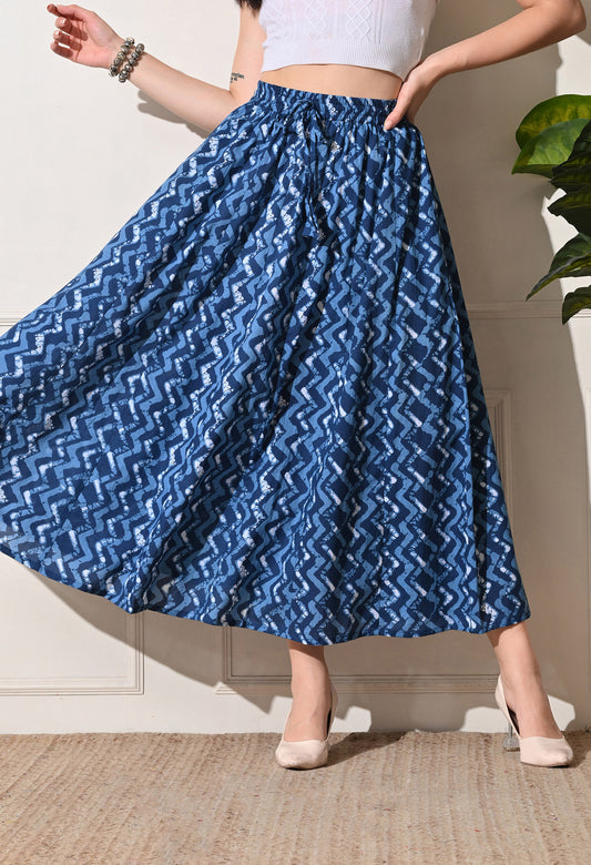 Cotton Blue Pink Chevron Printed Cutsleeves Top