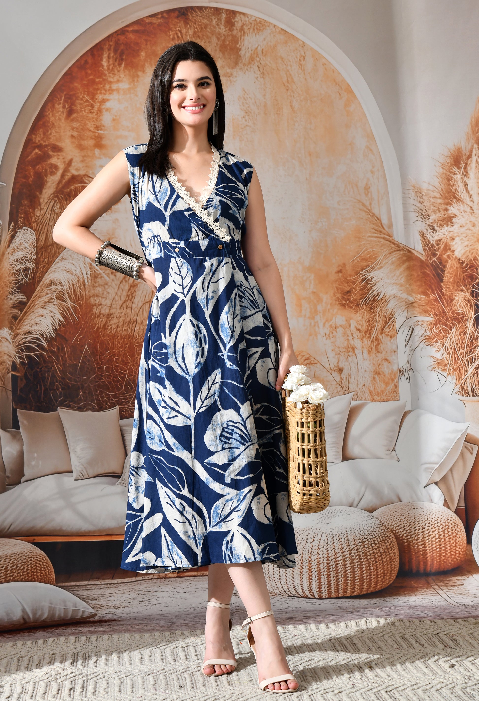 - Description: Soft Breathable Cotton with lace Wrap Dress has button opening and comes with ultimate fit and calmness.Perfect for outings,office dyas,lounging or shopping.