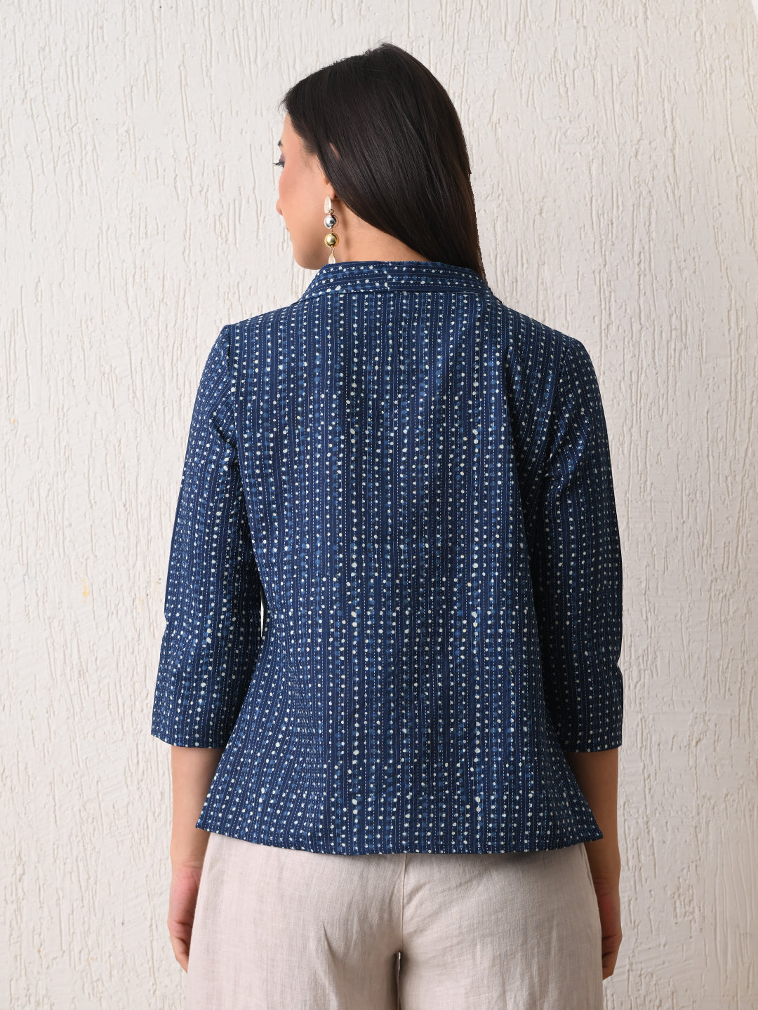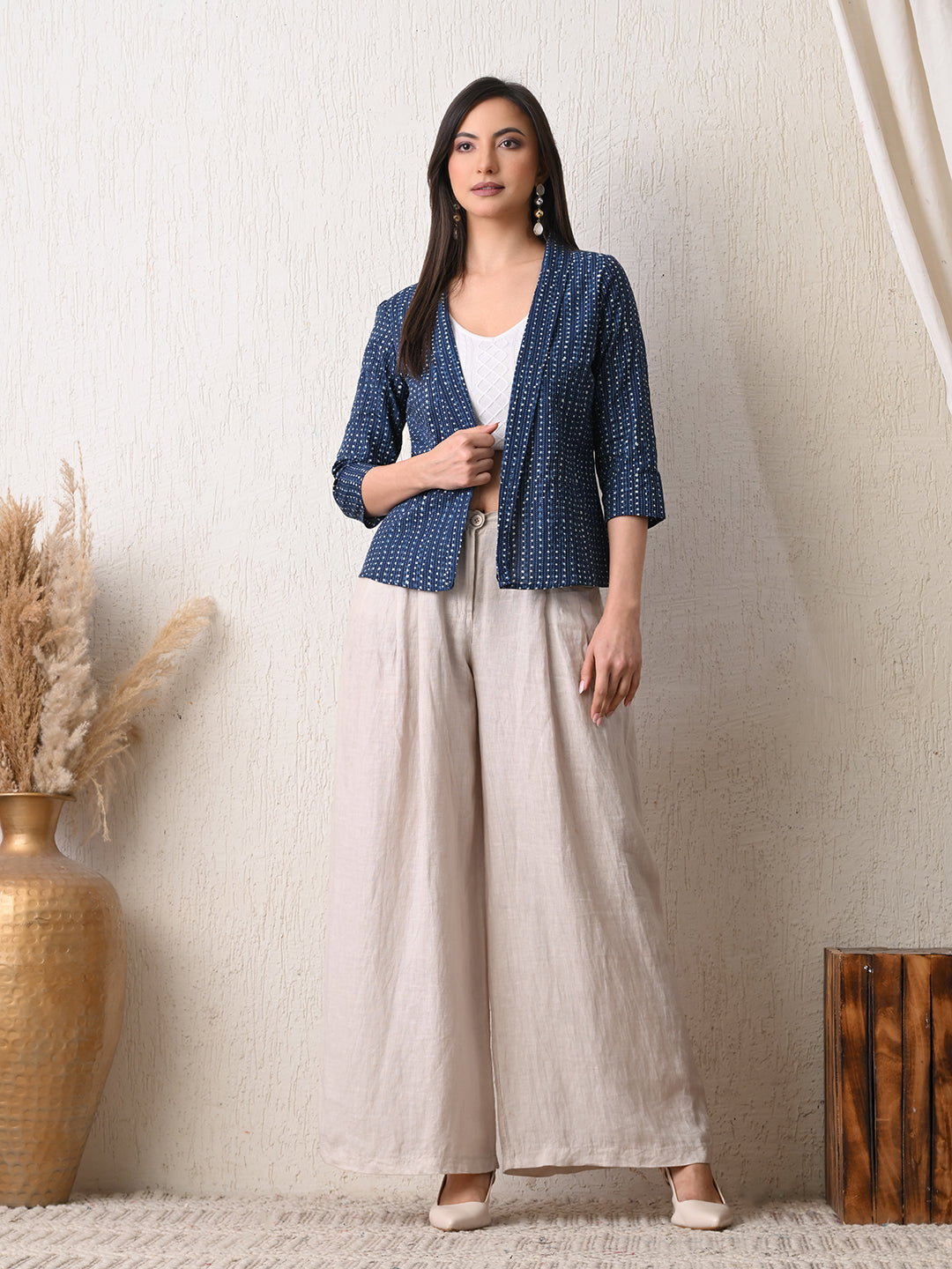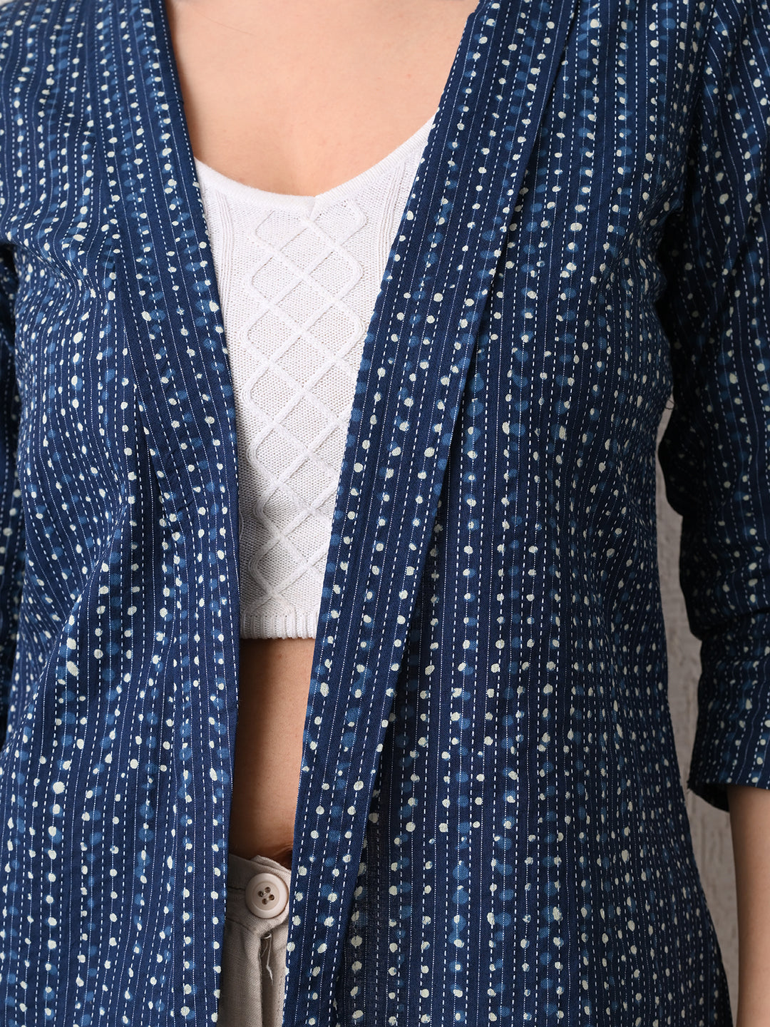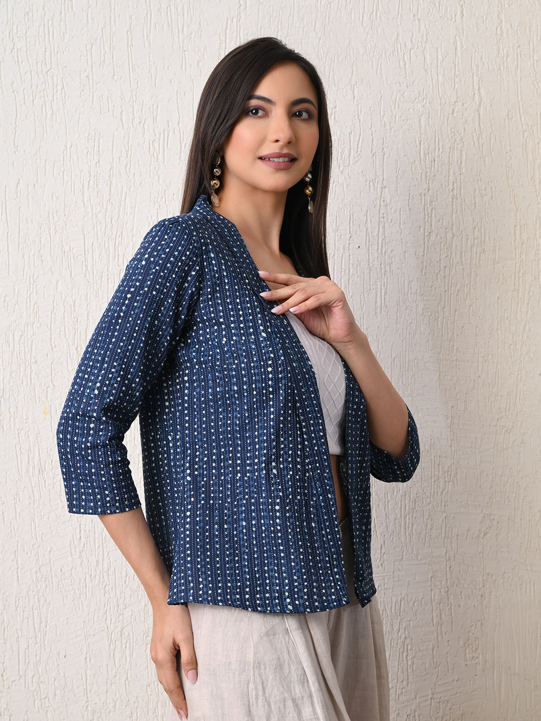 - Description: Into The World Of Artful Fashion With Our Mid-Length Shrug In Cotton Katha Fabric. Immerse Yourself In Its Comfort, Revel In Its Style, And Embrace The Rich Heritage That Comes With Wearing A Handcrafted Masterpiece.