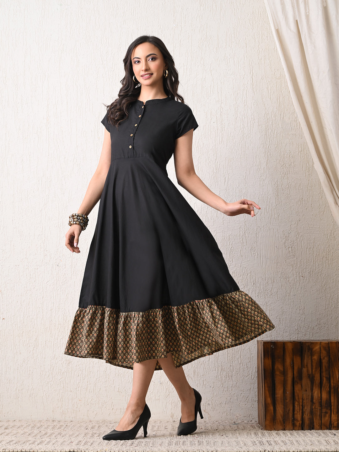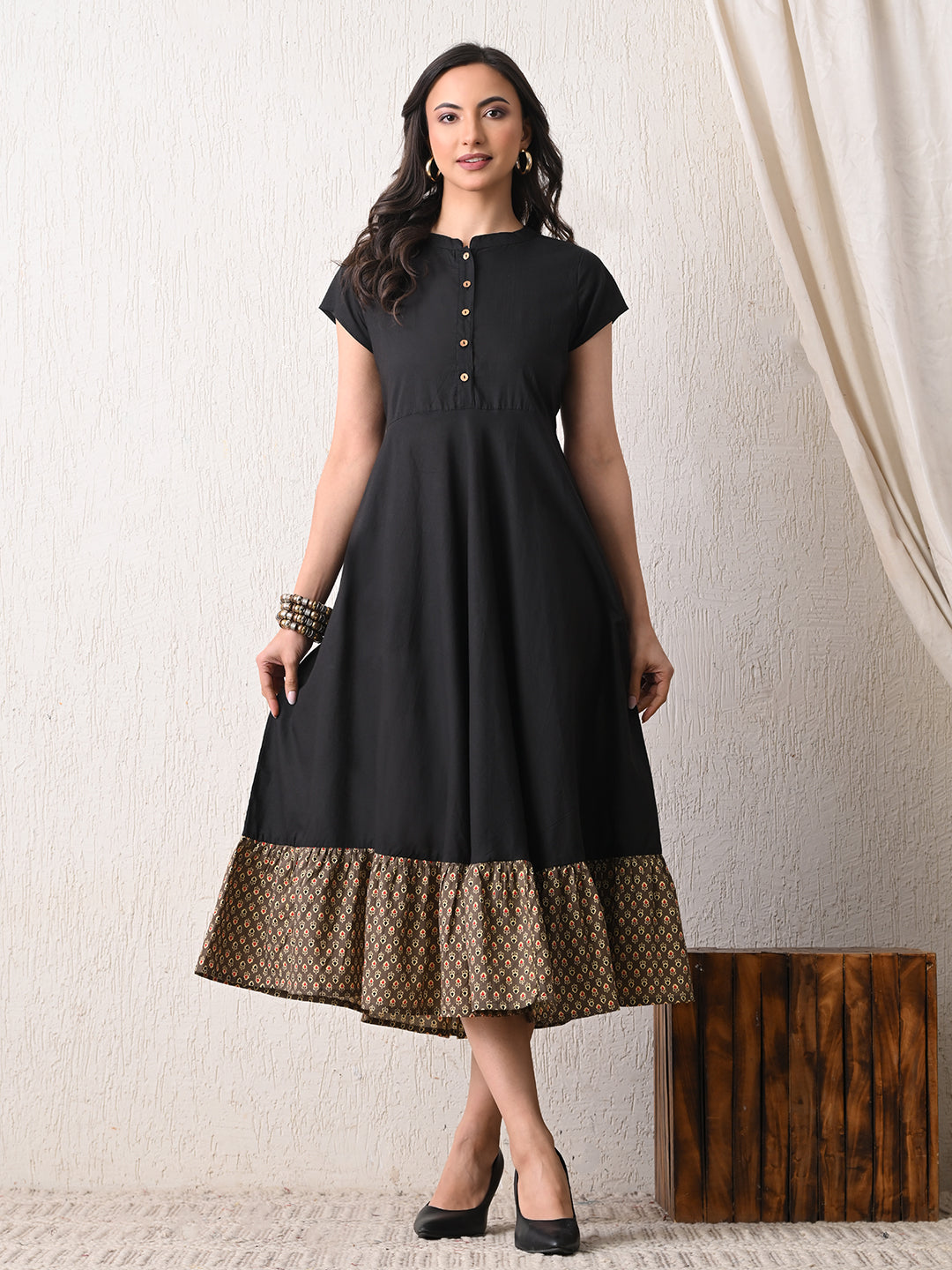 - Description: Embrace the freedom of movement and the chic charm of the Black Cotton Flared Pocket Dress. With its flattering silhouette, practical pockets, and comfortable fabric, it's bound to become your favorite go-to dress for any occasion.The sleeveless design allows for easy movement and keeps you cool during warmer days. The round neckline offers a classic and timeless appeal, making it suitable for various occasions and easy to accessorize.