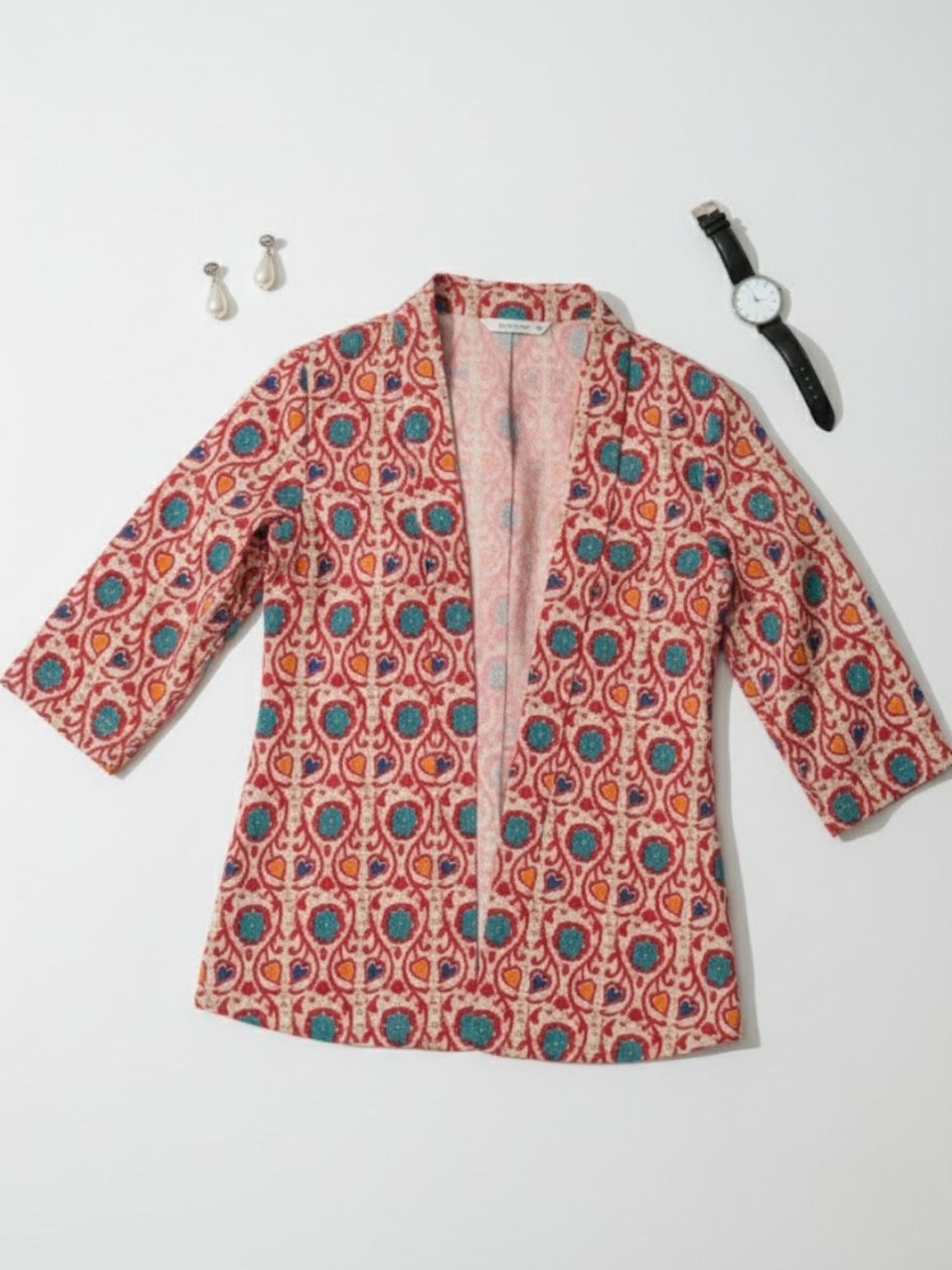 - Description: Into The World Of Artful Fashion With Our Mid-Length Shrug In Cotton Katha Fabric. Immerse Yourself In Its Comfort, Revel In Its Style, And Embrace The Rich Heritage That Comes With Wearing A Handcrafted Masterpiece.