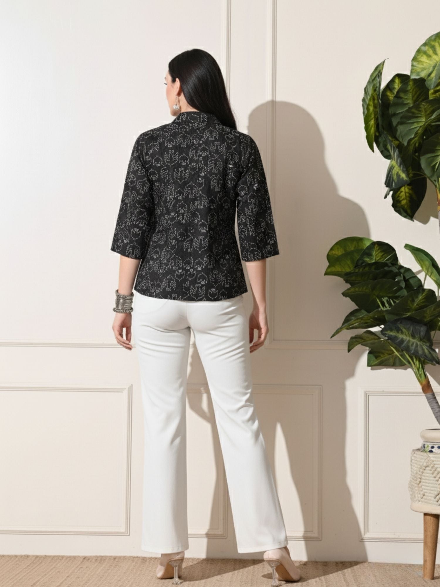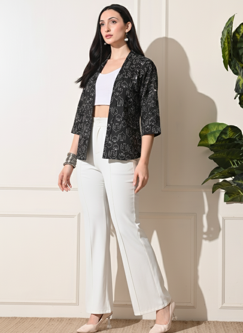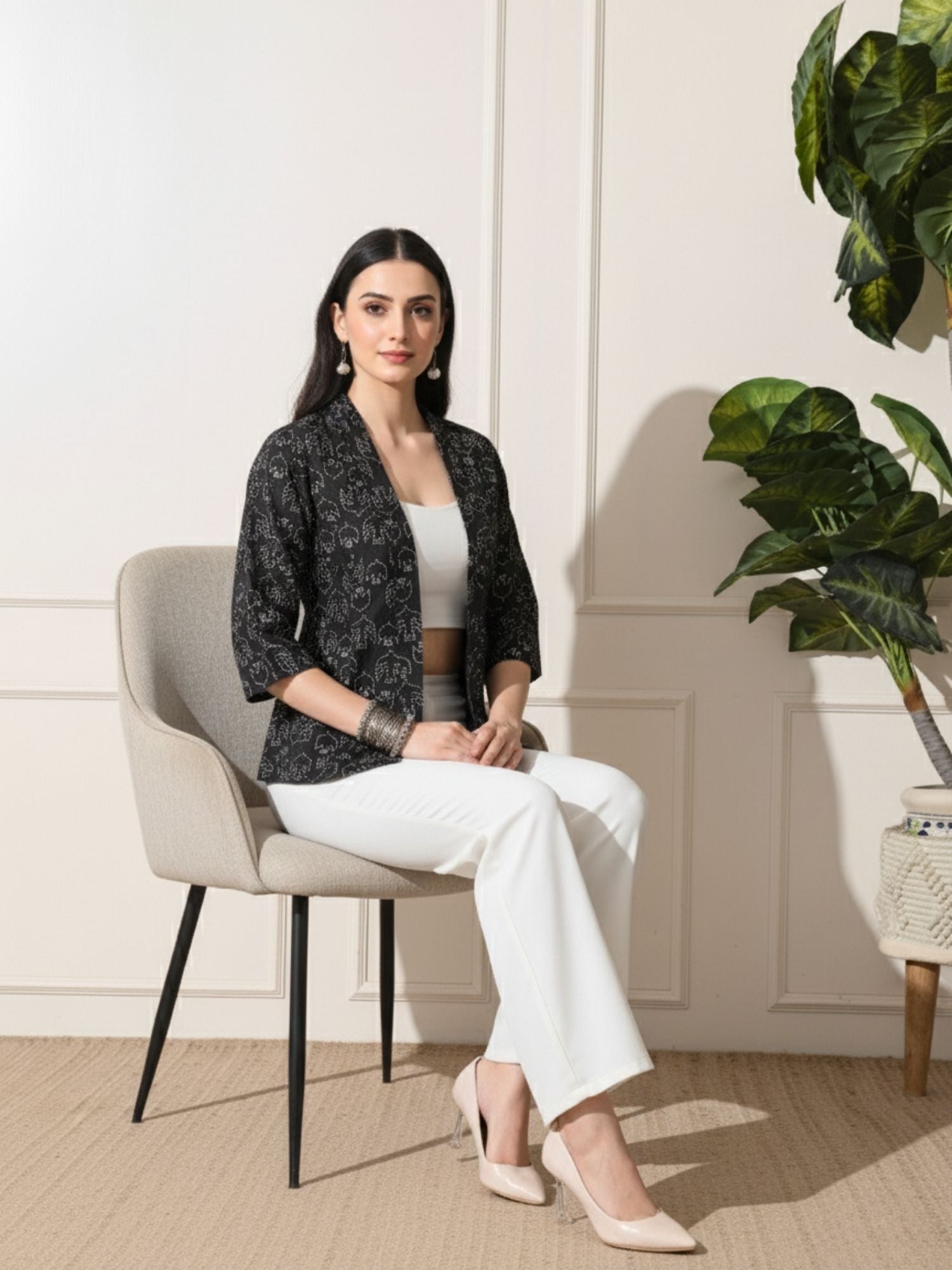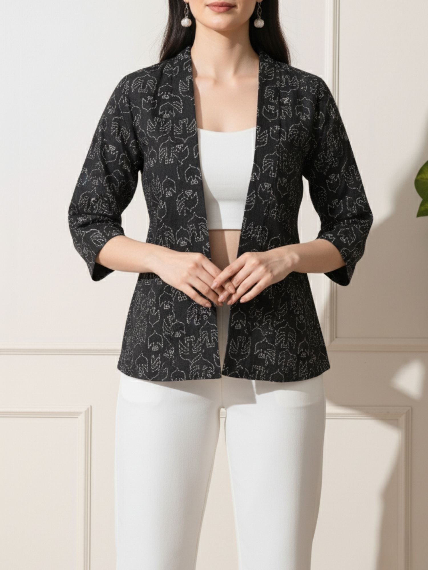 - Description: Into The World Of Artful Fashion With Our Mid-Length Shrug In Cotton Katha Fabric. Immerse Yourself In Its Comfort, Revel In Its Style, And Embrace The Rich Heritage That Comes With Wearing A Handcrafted Masterpiece.