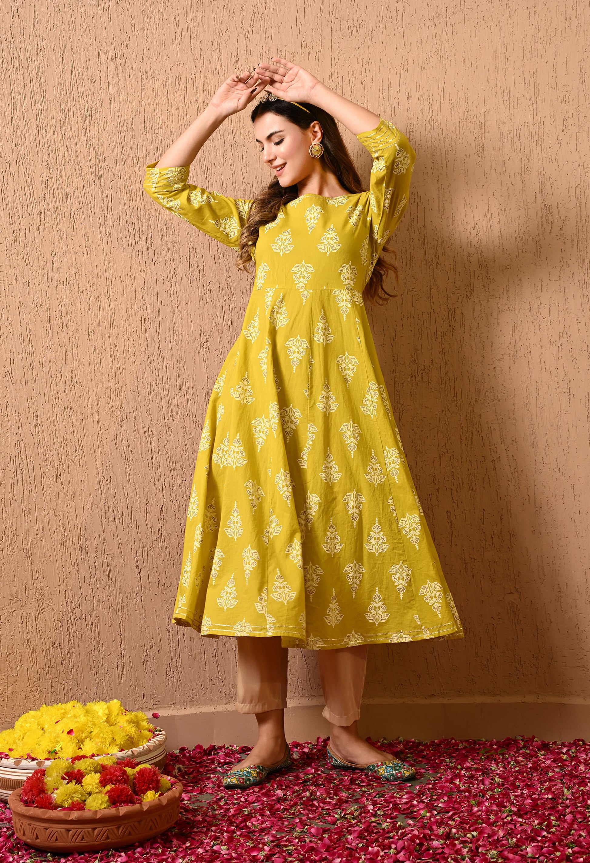 - Description: Mustard embroidered Anarkali with pant Set is a Ultimate choice for a glamourous look.This exquisite set is designed to turn heads and make you feel the belle of the ball.
