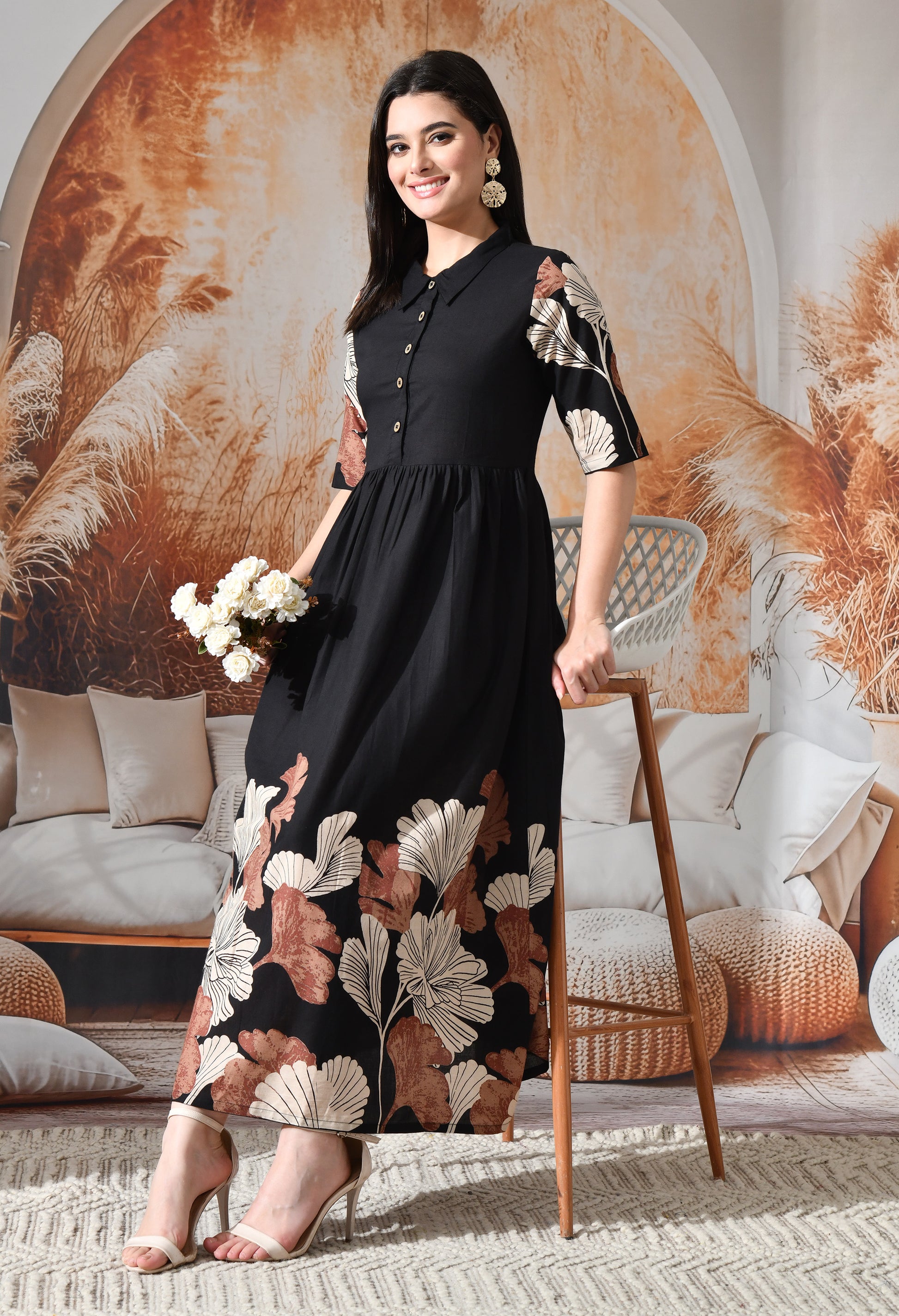 - Description: Embodying Comfort with style this Shirt Cotton dress has attractive print flow with openable buttons and has pocket. Look Classy yet subtle in this versatile dress as it will become your go to outfit.