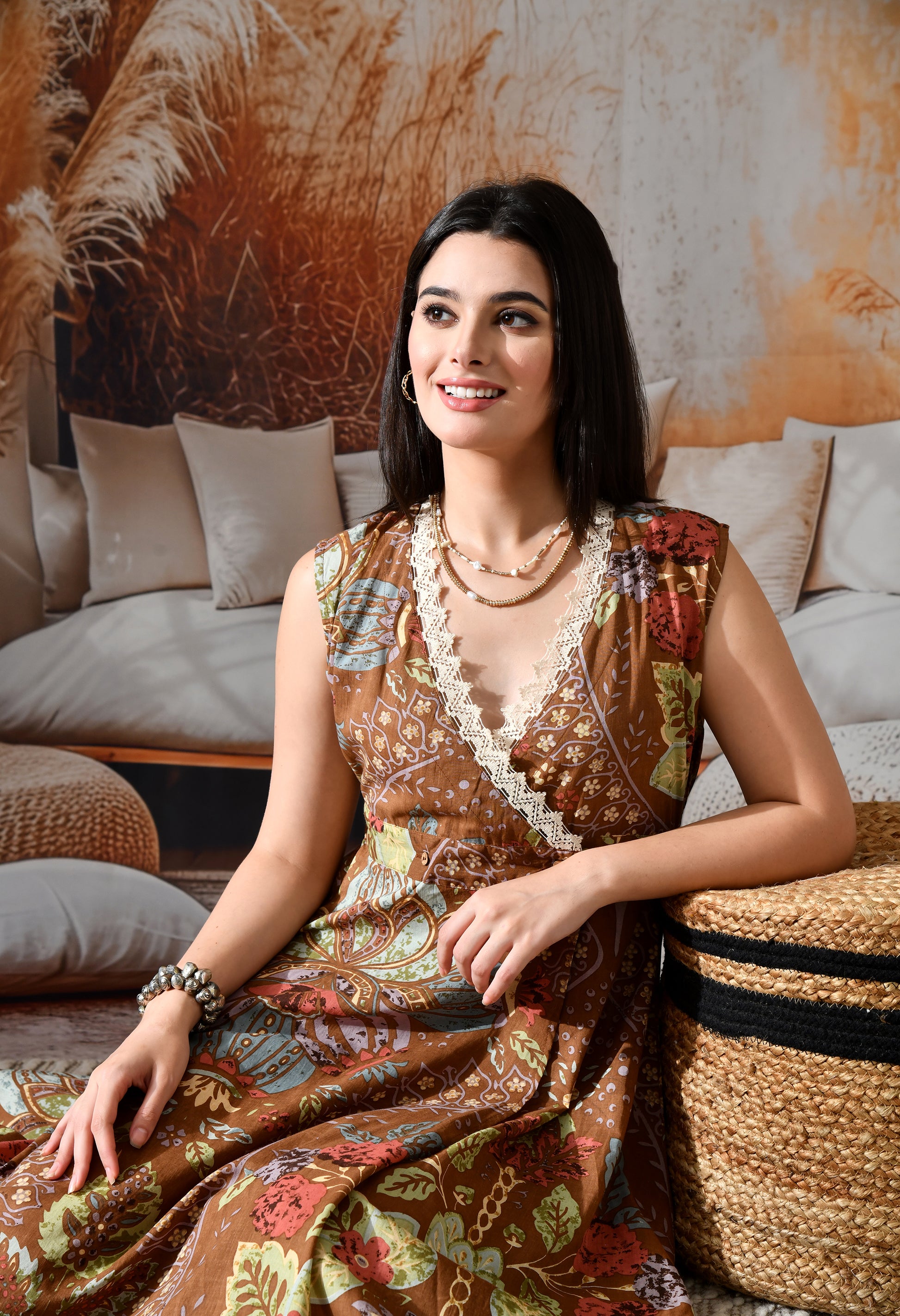 - Description: Soft Breathable Cotton with lace Wrap Dress has button opening and comes with ultimate fit and calmness.Perfect for outings,office dyas,lounging or shopping.