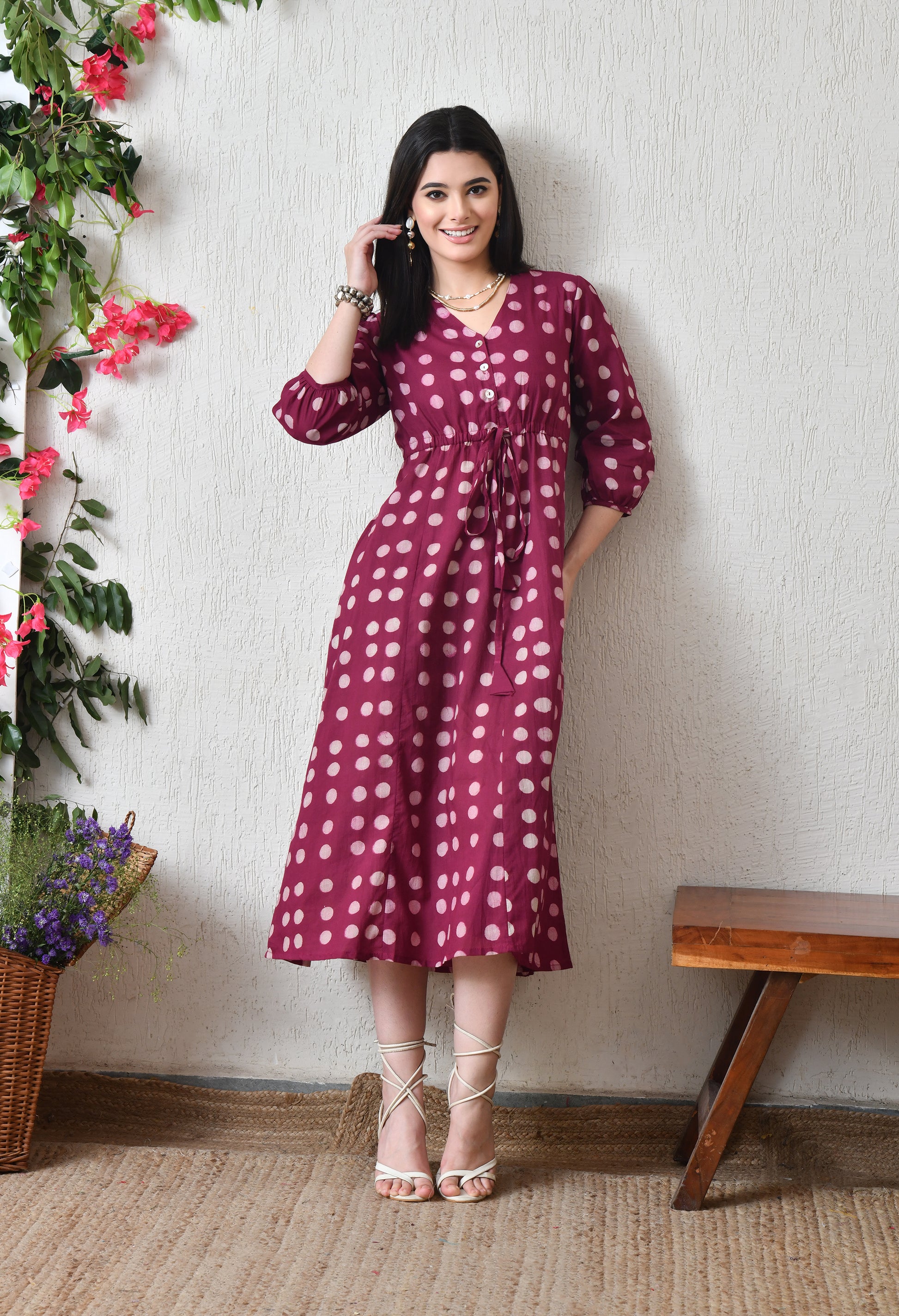 - Description: This unique Flare Dress is a blend of tradition with modern silhouette that has adjustable waist with tie-up.Emphasizing the artistry,styling and comfort,which collectively offers a distinct and charming Fit.