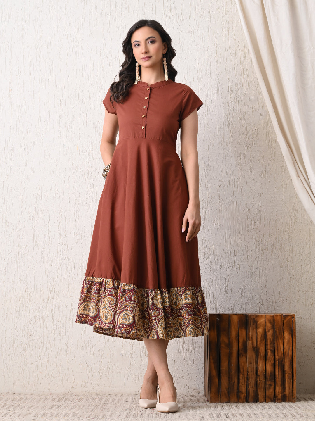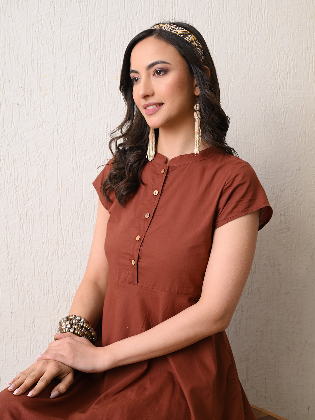 - Neckline: Band Collar